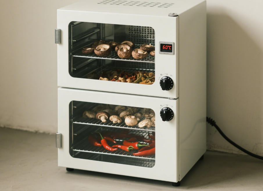 如果要做一些烘干类的食品,比如果干、肉干之类的,烘干设备就少不了啦。箱式食品烘干机就是一种常用的烘干设备,它采用封闭箱体结构,通过热风循环系统实现食品均匀脱水。这种烘干机可以支持电加热、燃气或蒸汽热源,温度范围广,能满足不同种类食品的干燥需求。