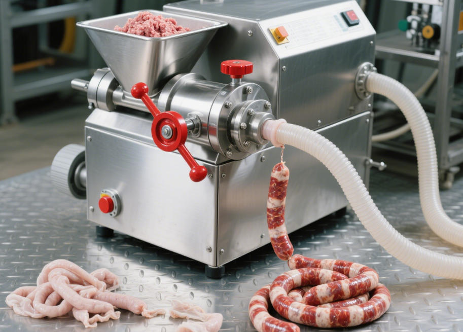 要是做肉类加工产品,像香肠之类的,那就需要碎肉机、打肉泥机、香肠清洁灌肠打扣一体机和电蒸箱等设备。碎肉机可以把肉切成小块或者绞成肉泥,打肉泥机可以把肉泥打得更加细腻,香肠清洁灌肠打扣一体机能够把肉泥灌入肠衣并打扣,最后用电蒸箱将香肠蒸熟。