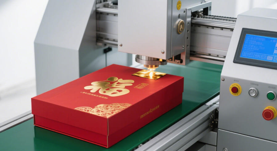 如果我们要生产的是高档礼品盒,那么在盒子成型之后,还需要进行一些精细的加工处理,以提升礼品盒的品质和美观度。其中,烫金机就是一种常用的设备。烫金机可以通过加热和加压的方式,将金属箔烫印在礼品盒的表面,形成金色或银色的图案和文字,增加礼品盒的奢华感。比如一些珠宝首饰的礼品盒,经常会用到烫金工艺来凸显其高端品质。