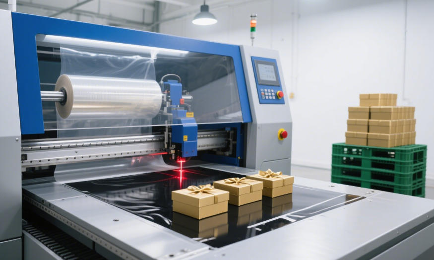 除了烫金机之外,覆膜机也是一种常见的礼品盒加工设备。覆膜机可以在礼品盒的表面覆盖一层透明的薄膜,这层薄膜可以起到保护印刷图案、增加光泽度、防水防潮等作用。根据薄膜的不同材质和工艺,覆膜可以分为亮膜和哑膜两种效果,我们可以根据礼品盒的设计需求来进行选择。