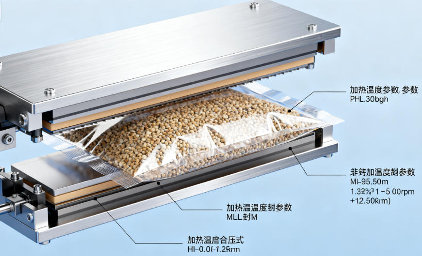 塑料膜、铝塑膜:用“热封装置”,通过加热的封刀把薄膜融化粘在一起,温度、压力、时间都得控制好——温度太低封不牢,太高会把薄膜烫破,压力太大容易压坏物料(比如饼干)。