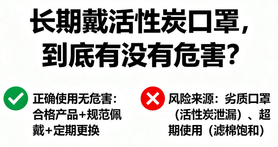 只要选择合格产品、正确使用、及时更换,长期佩戴活性炭口罩是安全的,不必过度担心。