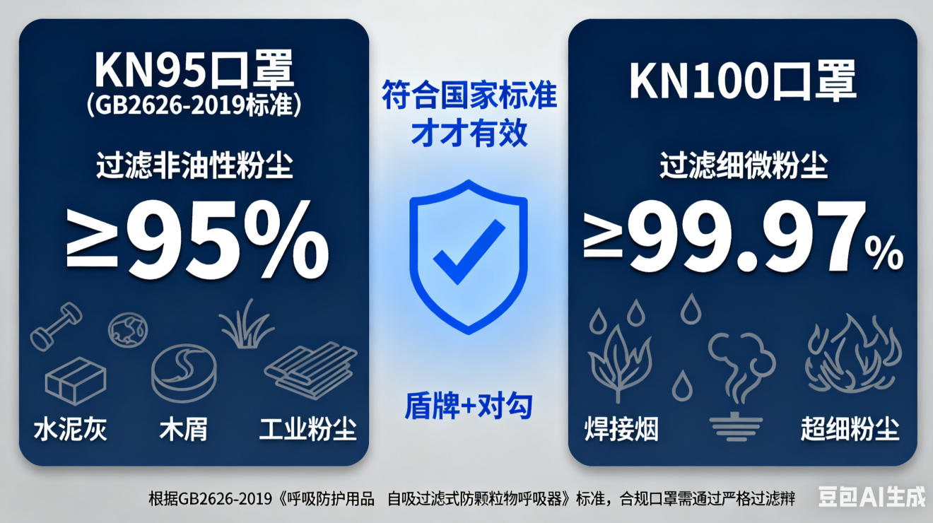 比如我们常说的KN95口罩,它是通过了GB2626-2019KN95标准认证的,对非油性颗粒物的过滤效率不低于95%。这意味着,只要我们佩戴的是符合标准的KN95口罩,就能够有效地阻隔95%以上的非油性粉尘颗粒,像什么水泥灰、木屑、焊接烟雾等都不在话下。而且,还有更高等级的KN100口罩,它对细微粉尘颗粒物的过滤效率能达到99.97%,可以说是防尘效果非常好了。