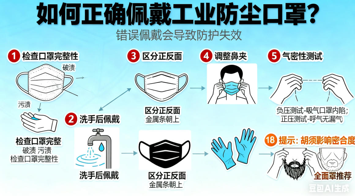 即使选择了优质口罩,错误佩戴也会导致防护失效。请遵循以下步骤: