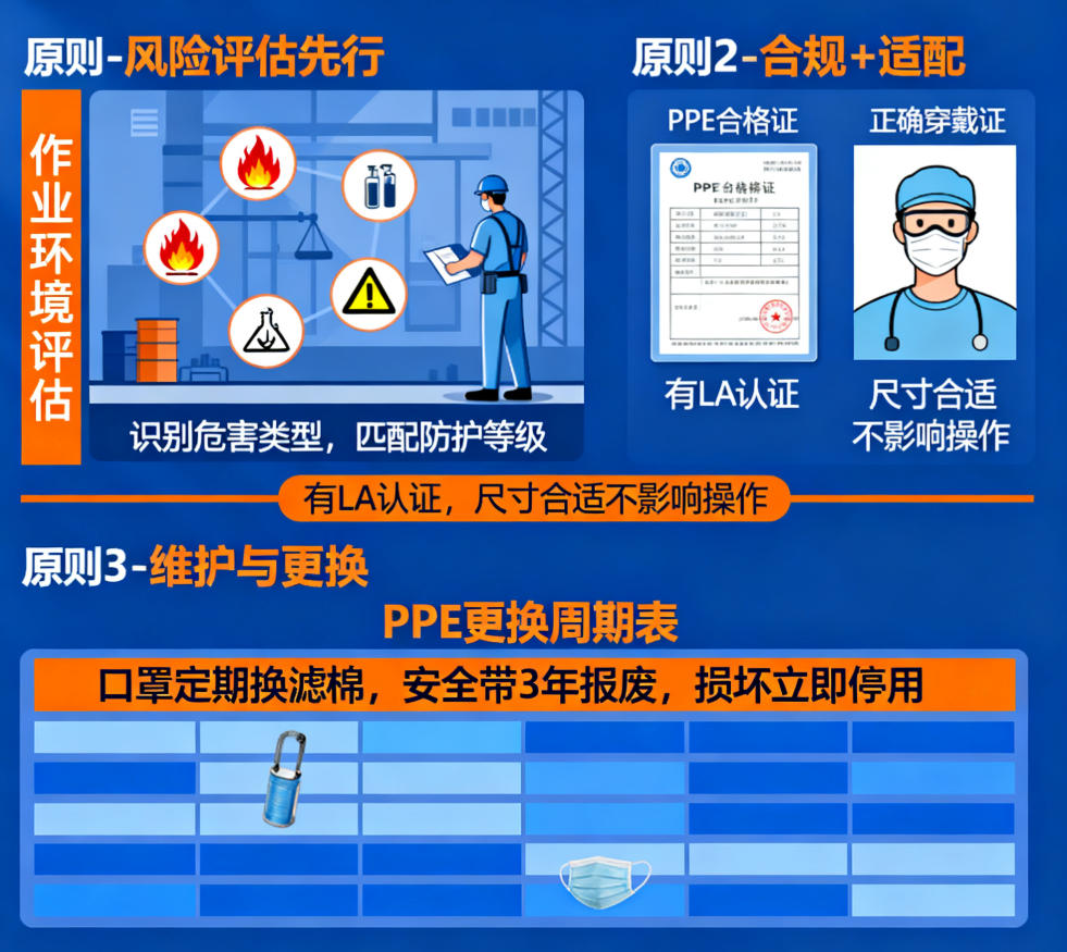 ✅ 三、如何正确选择和使用PPE?三大原则!