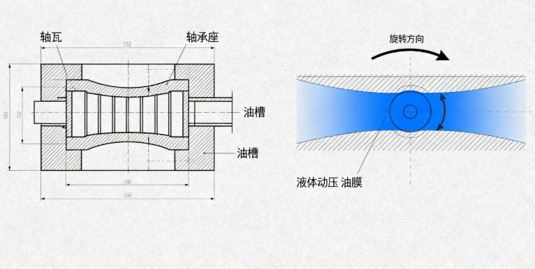 结构特点:轴瓦内表面有特殊油槽,当轴高速旋转时(通常≥3000r/min),润滑油被带入轴与轴瓦的间隙,形成压力油膜(油膜厚度可达0.01-0.1mm),将轴完全托起,实现“无接触传动”,摩擦系数极低(0.0005-0.001),且承载能力极强(可承受数千kN载荷)。