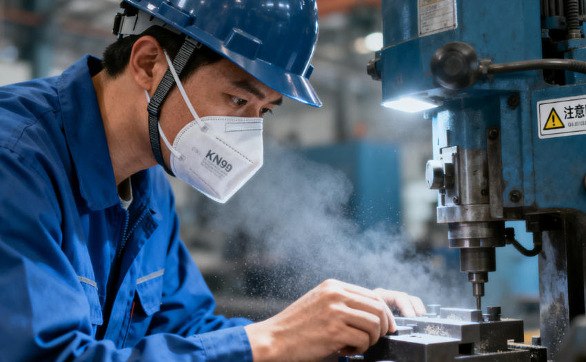 朋友们,你们知道吗?(敲黑板)普通口罩在粉尘超标30倍的环境里,防护力直接归零!我亲自测试过——那些宣称“防PM2.5”的网红口罩,面对电焊烟尘和化学气体,根本就是纸盾牌!