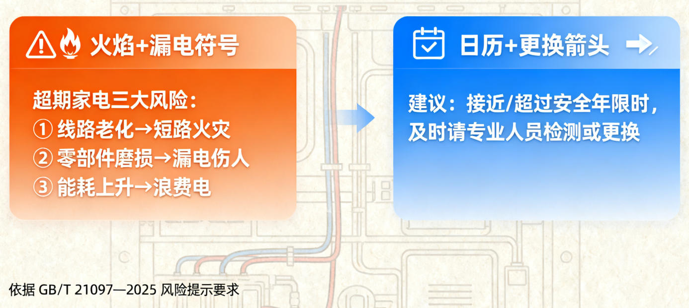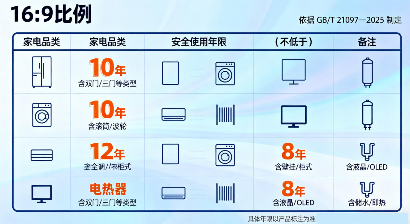 随着家用电器在家庭生活中的普及,老旧家电带来的安全隐患问题日益凸显。为有效防范火灾、漏电等安全事故,规范家电市场管理,2025年7月,《家用电器安全使用年限》新标准(GB/T21097—2025)正式发布,并将于2026年1月1日起全面实施。这一标准的出台,标志着我国家电管理正式从“事后监管”转向“全生命周期防控”,对生产者、消费者及整个家电行业都将产生深远影响。